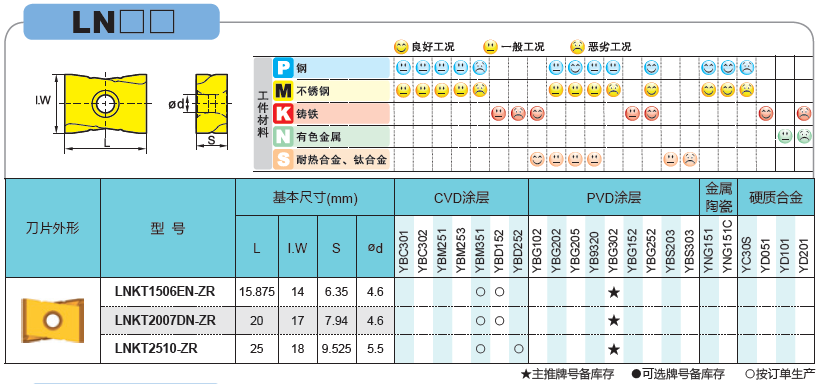 株洲銑刀片,LNKT1506EN-ZR YBG302,涂層刀片 可轉(zhuǎn)位刀片